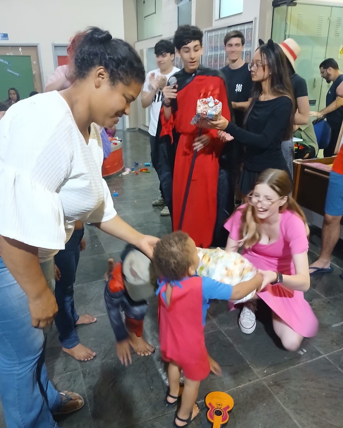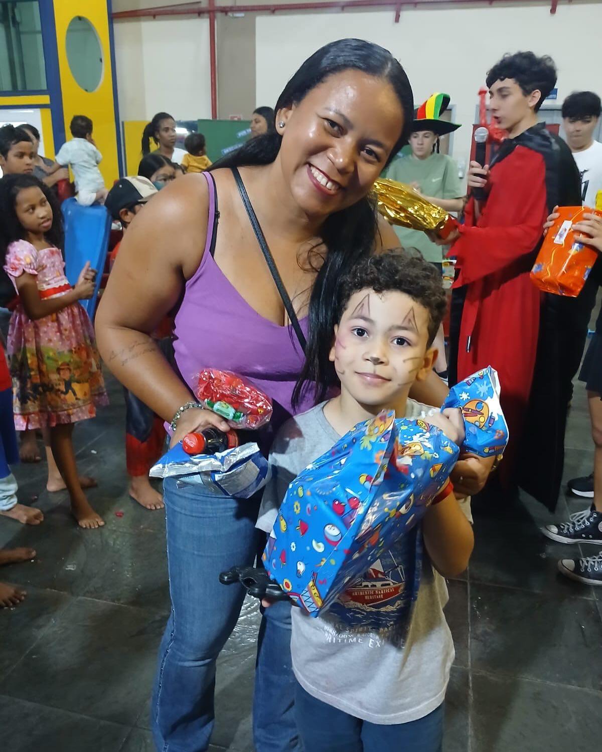 Cada família participante do evento contribuiu com doações de leite em pó para o Fundo Social de Solidariedade e brinquedos que levaram alegria à Festa do Dia das Crianças da comunidade Nova Era e Vila Aparecida.