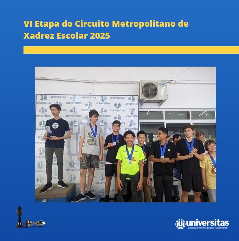 No último dia 08 de novembro, nossa equipe arrasou na VI Etapa do Circuito Metropolitano de Xadrez Escolar 2025, dessa vez realizada aqui, "em casa", no Colégio Universitas - Educação Infantil e Ensino Fundamental.